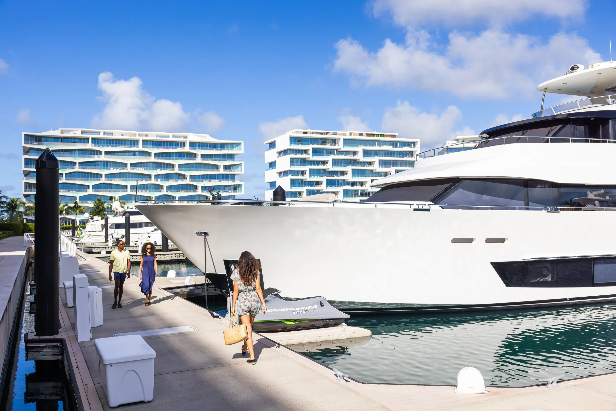 Dockage rates allow all guests staying on the boat (non-crew) to enjoy the collection of amenities across the 600-acre luxury resort community of Albany, including numerous restaurants, the championship 18-hole golf course, fitness center, racquet center, spa and salon, pools and kid's waterpark and retail shops set at the heart of the marina.