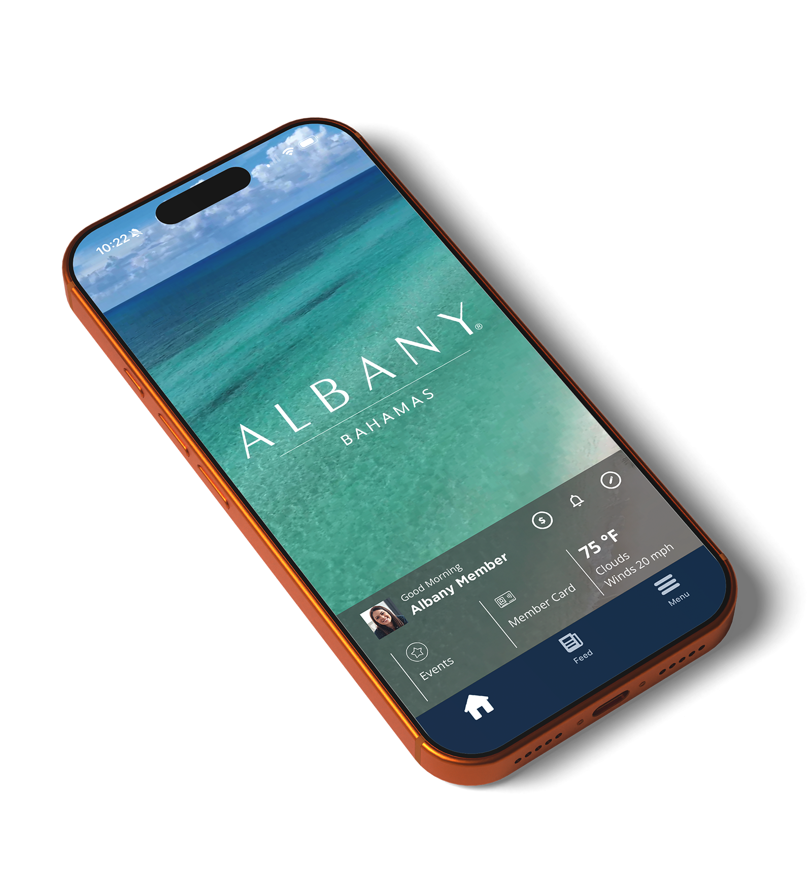 Connect to all things Albany by downloading the Albany App. Search"Albany Bahamas" within the App Store to access Albany's daily club calendar, book spa or fitness appointments, lessons at the golf course or racquet center and reserve restaurant reservations.